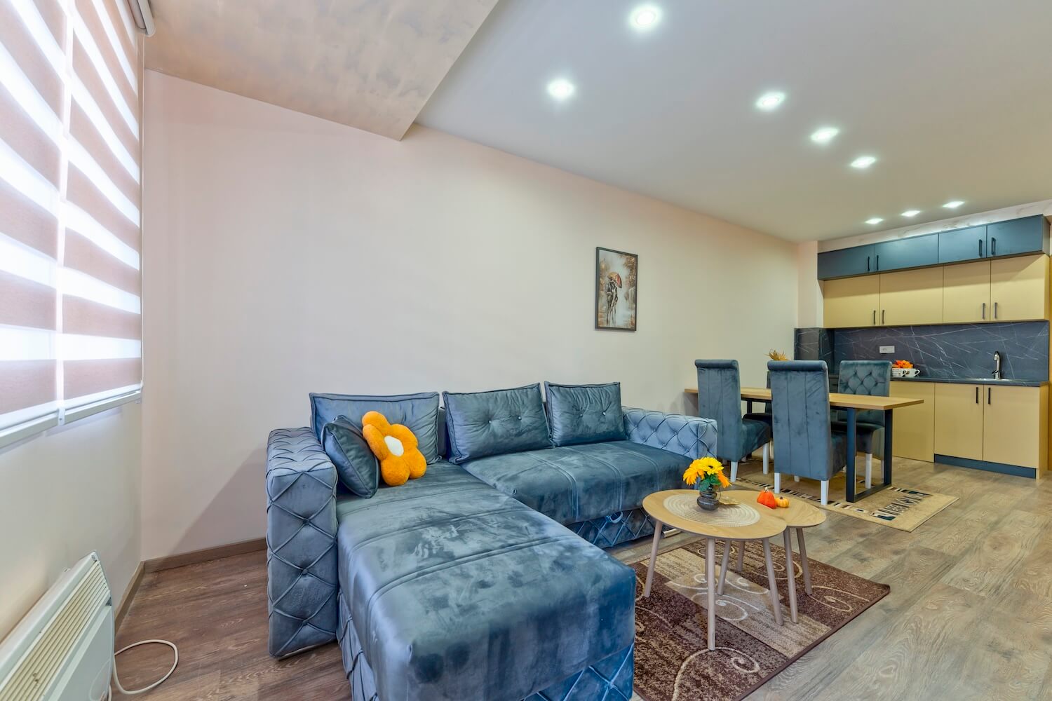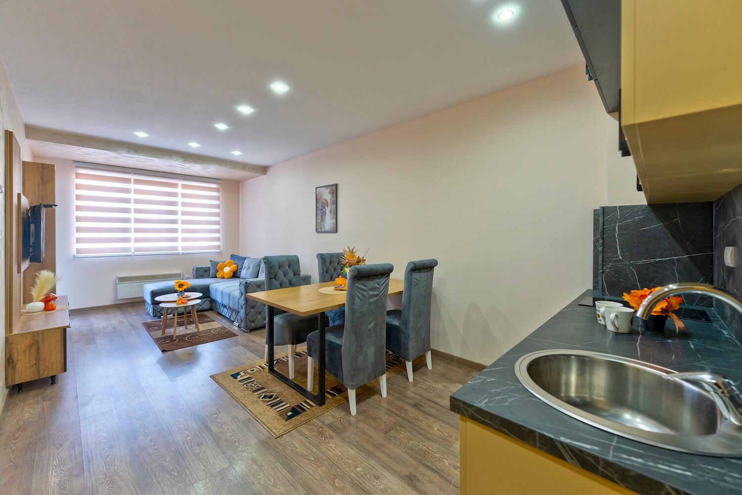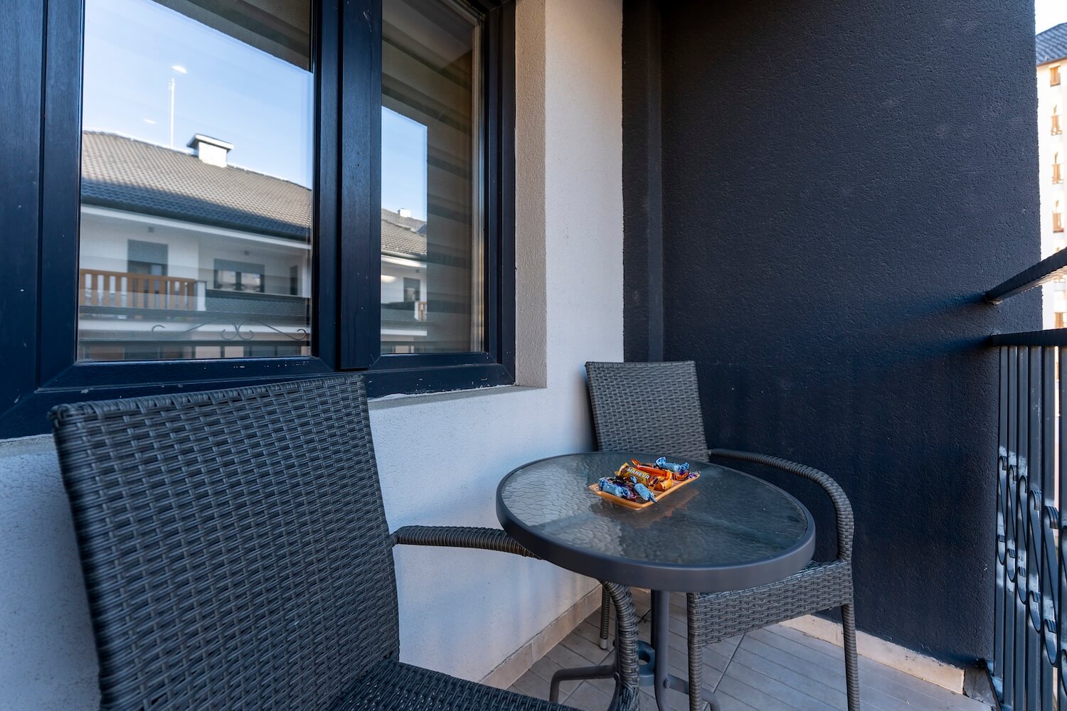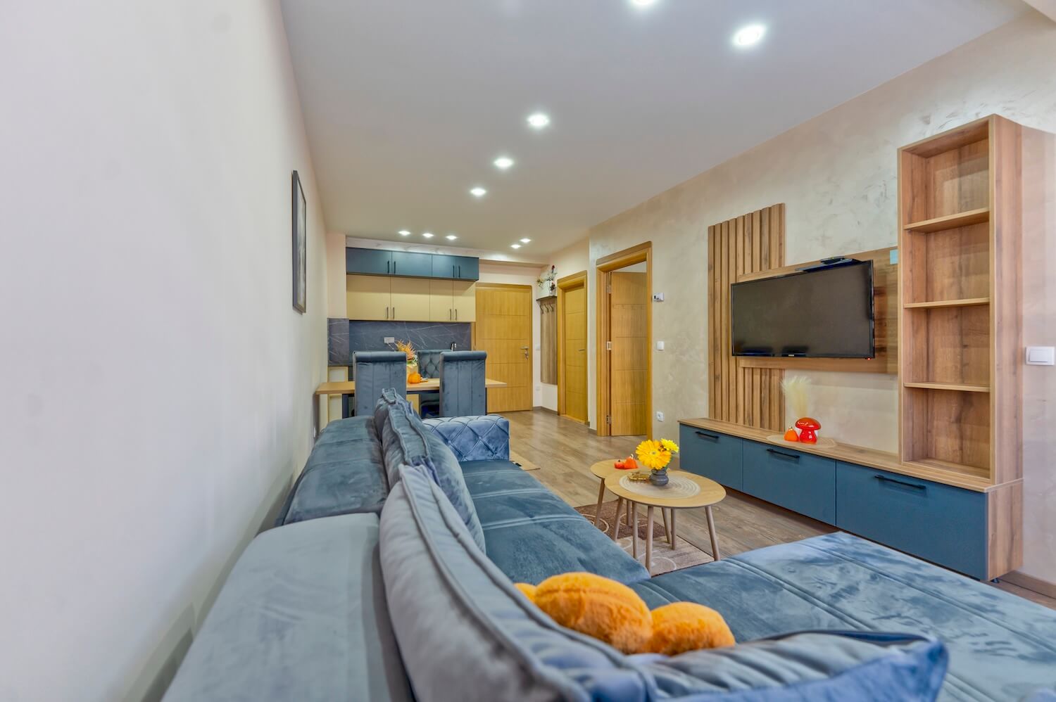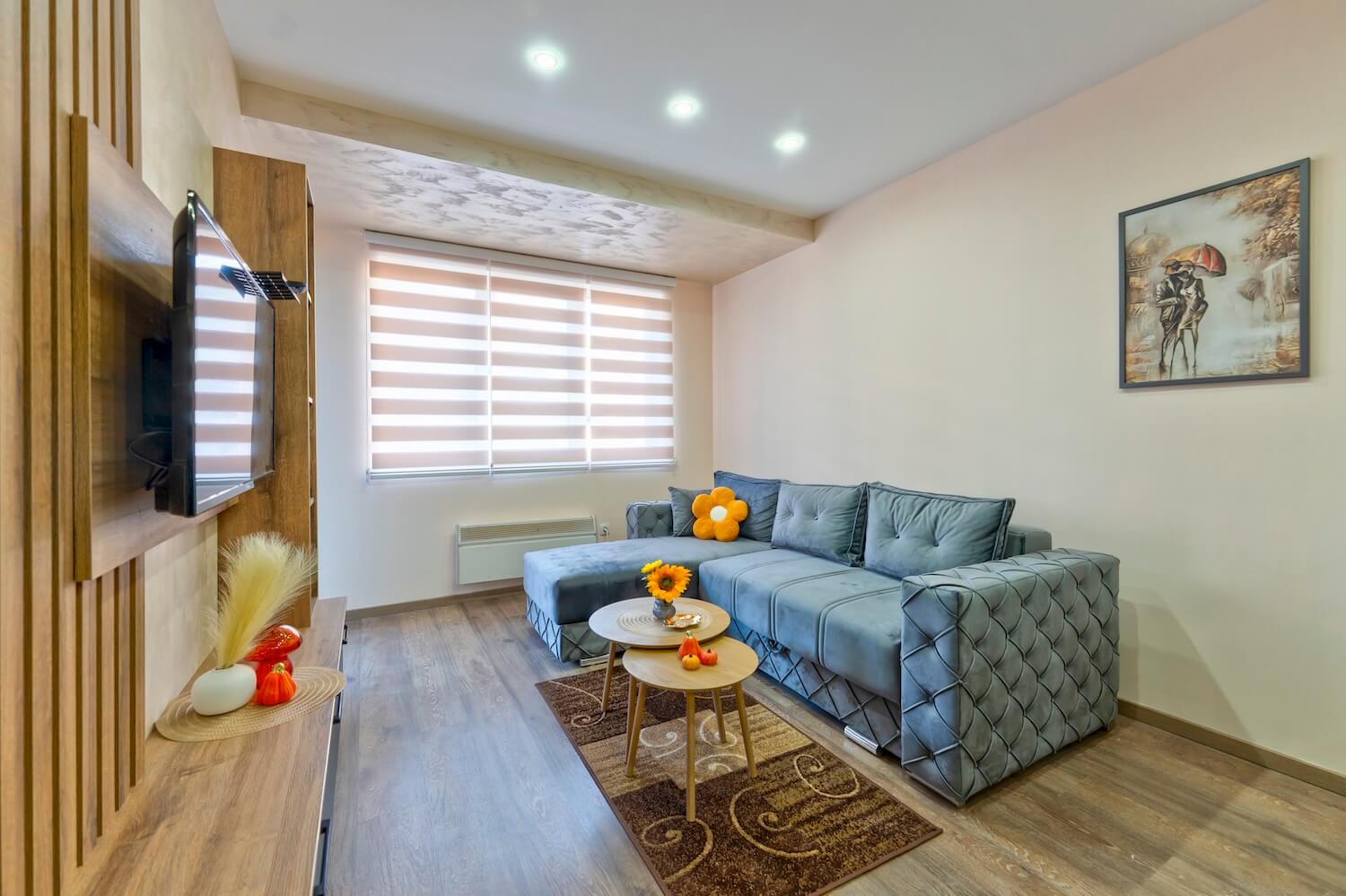 Apartman je luksuzno opremljen i potpuno nov, ima zasebnu spavaću sobu i veličine je 43 m2, terasu sa predivnim pogledom. Apartman ima internet konekciju, kao i kablovsku TV, pogodan je za smeštaj do 4 osobe. Kuhinja je potpuno opremljena. Gostima su obezbeđeni peškiri i posteljina. Posedujemo i dva kreveca za bebe.