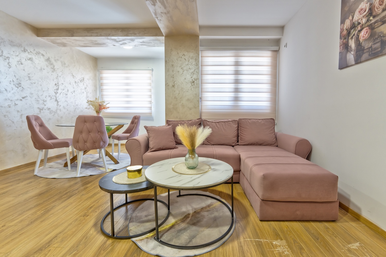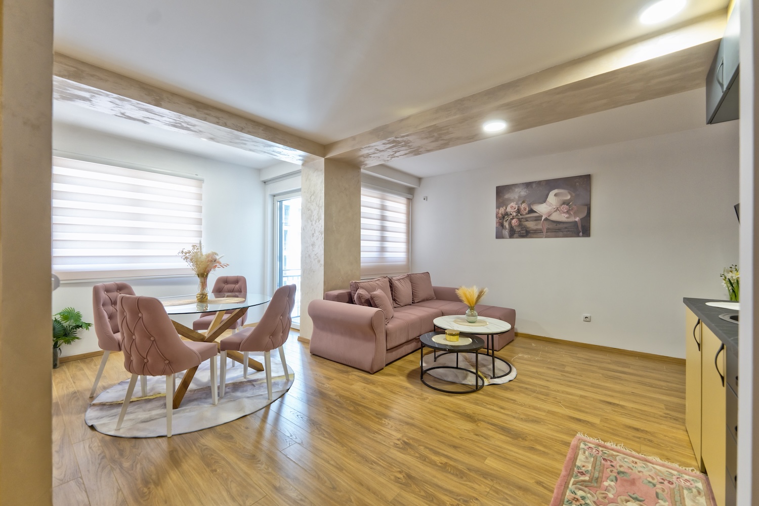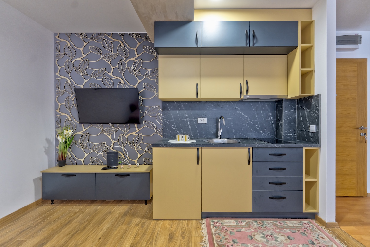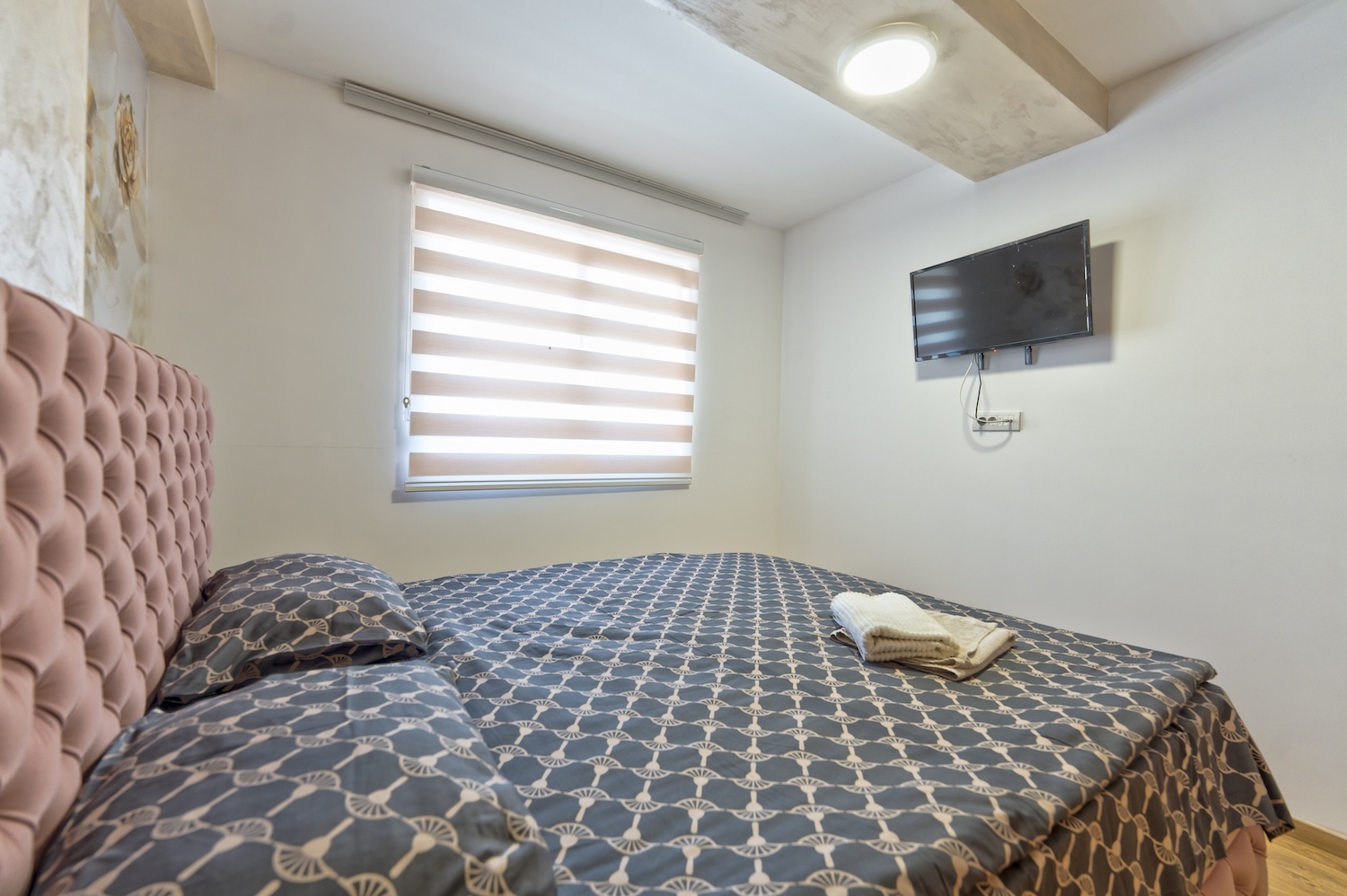 Apartman je luksuzno opremljen i potpuno nov, ima zasebnu spavaću sobu i veličine je 45m2, terasu sa predivnim pogledom, poseduje internet konekciju, kao i kablovsku TV. Pogodan je za smeštaj do 4 osobe. Kuhinja je potpuno opremljena. Gostima su obezbeđeni peškiri i posteljina.